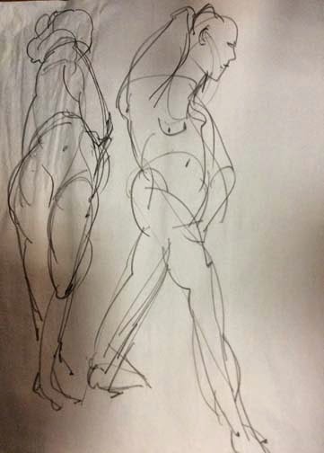 We will do the quick poses to warm up, then will choose a pose for the remainder of the evening. It is a chance to go into a drawing more deeply (or to move around). It is also a chance to paint. If you do paint, please protect our new floor.
